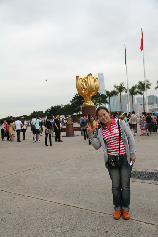 金紫荊廣場位于香港會展中心旁,是為紀念香港回歸祖國而設立。香港特別行政區成立后,中央政府把一座金紫荊雕塑送贈香港,并安放在金紫荊廣場上,這朵紫荊花乃鍍金雕像,外表金光閃閃,于日光下發出耀眼金光。