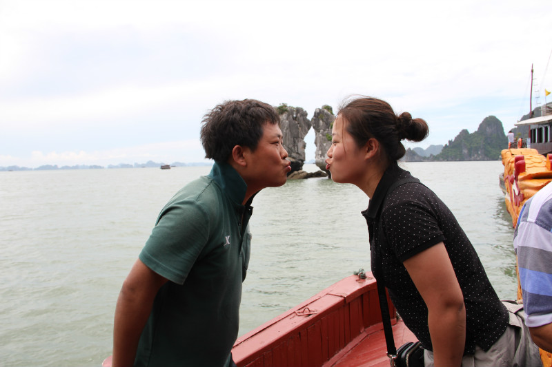斗雞石是下龍灣海上標致性的景物,兩塊酷似雄雞的溶巖漾在碧波上,惟妙惟肖令人拍手稱絕。