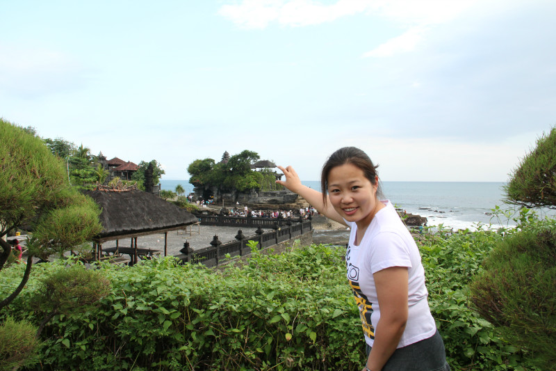 (海神廟)蓋在海邊的一塊巨巖上,它是巴厘島最著名的寺廟之一。漲潮時,此廟四周環繞海水,和陸地完全隔離。落潮時方可以相通。海神廟建于十六世紀,祭祀海神。