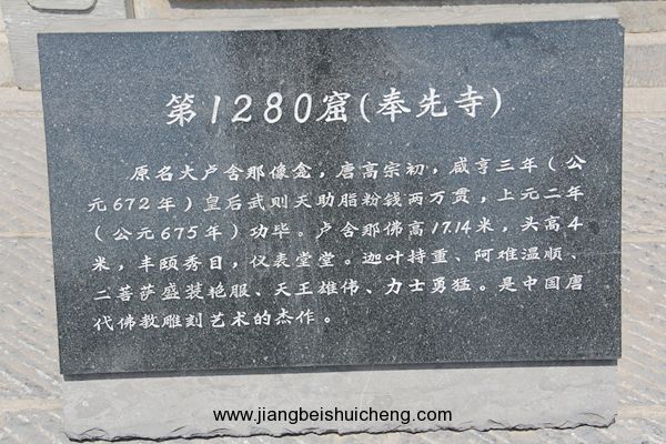 龍門石窟龍門石窟是中國(guó)石刻藝術(shù)寶庫(kù)之一,是國(guó)家AAAAA級(jí)景區(qū),位于洛陽(yáng)南郊伊河兩岸的龍門山與香山上。