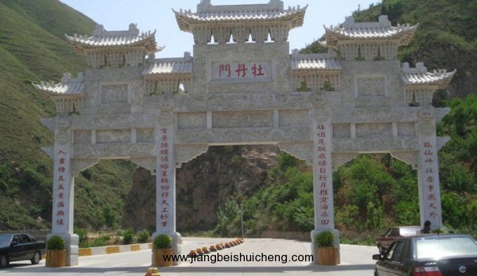 牡丹們的入口,牡丹們。從飲鹿槽向西,即是一條深溝大壑,當?shù)厝私兴档稀现杏腥?ldquo;美泉”。據說,用這股美泉澆灌的牡丹,花色特別嬌艷。唐玄宗喜歡牡丹,他曾在牡丹溝開辟牡丹園,由當時精通園藝的花師宋單父培植。據《花經》記載:“種花萬本,色樣各殊。”