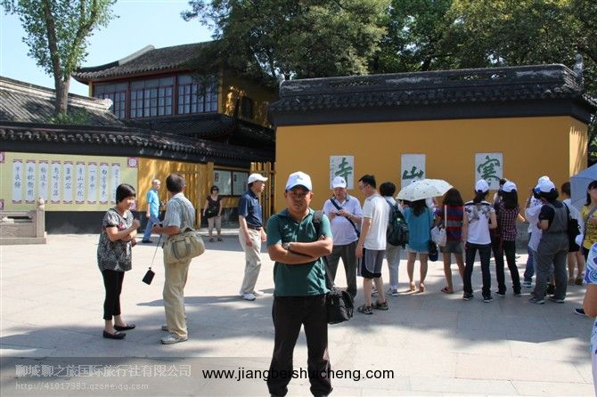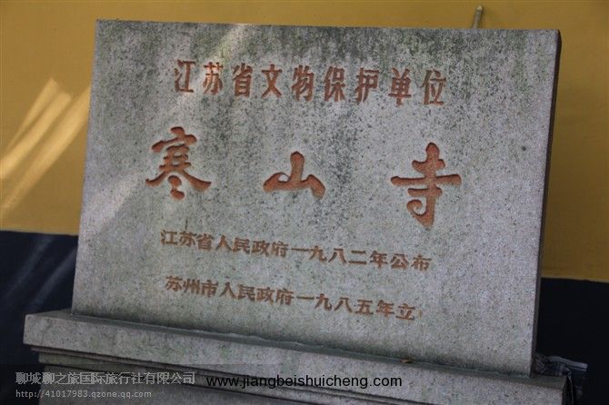 寒山寺(Hanshan Temple) 寒山寺在蘇州城西閶門外5公里外的楓橋鎮,建于六朝時期的梁代天監年間(公元502-519年),距今已有1400多年。原名“妙利普明塔院”。唐代貞觀年間,傳說當時的名僧寒山和拾得曾由天臺山來此住持,改名寒山寺。今天我們的導游就帶大家來到了蘇州,看一下寒山寺。