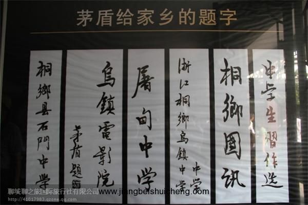 茅盾故居是嘉興市迄今唯一的中國全國重點文物保護單位,坐落在烏鎮市河東側的觀前街17號,四開間兩進兩層木結構樓房,坐北朝南,總面積約450平方米。陳運和詩稱“故居完整系統的陳列吸引世人進入的是昨天,帶走的是明朝”。