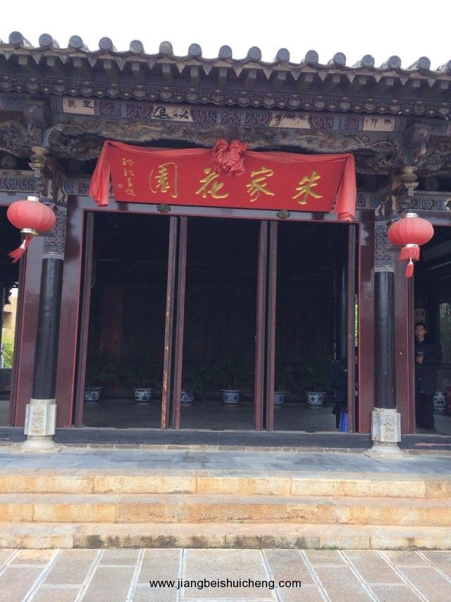 朱家花園坐南朝北,入口為垂花大門。左側沿街的10間“呆腳樓”與其后的“跑馬轉角樓”相連,是當年的帳房和資供應鋪面等,是朱家經(jīng)營進出口貿(mào)易,買賣大錫、洋紗布匹、食鹽、煙土的“朱恒泰”總商號。右側前為家族祠堂,后為內(nèi)院。祠堂前有水池,水上有戲臺、亭閣、庭蔭花木等。水池邊有右欄。