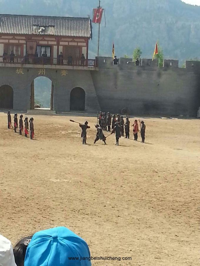 九頂塔影視劇場精心打造了五大實景劇。有紅色經典參與劇《地道戰》、好萊塢場景劇《山洪暴發》、大型馬戰實景劇《好漢秦瓊》、《武松醉打蔣門神》、《劉三姐招親》,是國內實景劇節目演出最多的景區。紅色經典參與劇《地道戰》演員陣容龐大,具有較強的思想性、參與性、喜劇性和娛樂性,再現了當年地道戰的戰爭場景,濃縮了地道戰的精彩片段,是一部難得的“牢記歷史、勿忘國恥”的生動愛國主義教育題材。好萊塢場景劇《山洪暴發》,再現了暴風驟雨、驚心動魄的場面,氣勢磅礴,令人震撼,弘揚了中國人民不被自然災害所嚇倒和團結一致、克服困難、重建家園的大無畏精神。
