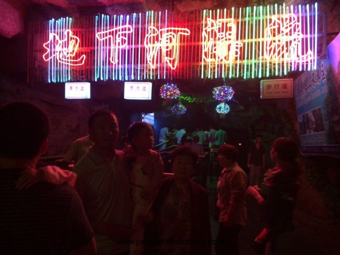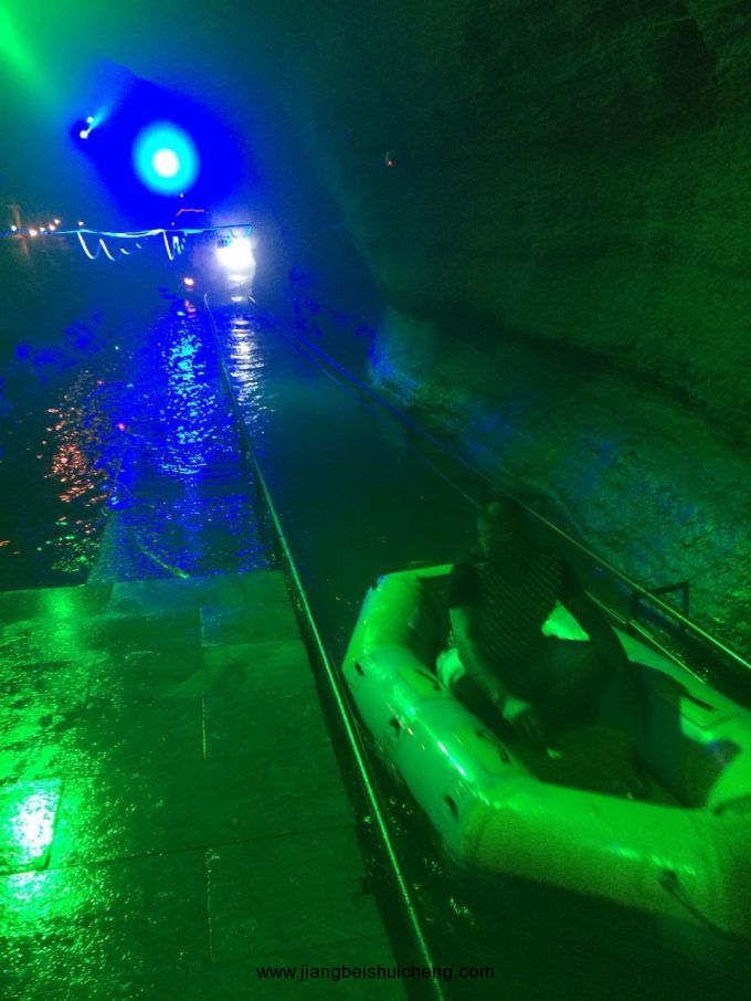 第二天游覽地下大峽谷,地下大峽谷最出名的游玩項目當屬地下漂流。地下河漂流項目經(jīng)過改造,漂流長度由原來的723米延長到1000米。該項目已經(jīng)得到上海大世界吉尼斯記錄總部的認證,被譽為中國最長的溶洞漂流項目[。漂流道的改造設計充分體現(xiàn)了溶洞內(nèi)的幽深莫測,起伏高下,波激浪涌,抑揚頓挫的特點和恐龍模型的陣陣吼聲,將地下河漂流的原生野始,驚險刺激演繹的淋漓盡致。