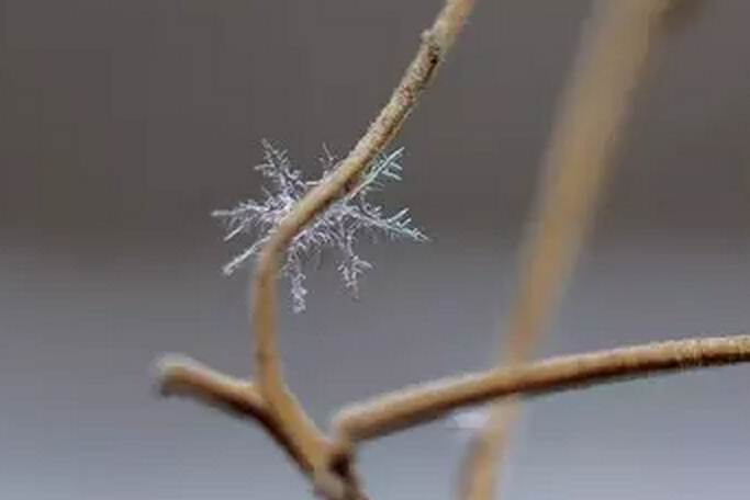 拍攝雪花晶體時,我們?yōu)楸苊庋┗ㄒ蜷W燈離微 小晶體過近,散發(fā)的炙熱溫度使雪花融化,需要放棄利用開啟閃光燈讓晶體更具有光感和質(zhì)感的方法。