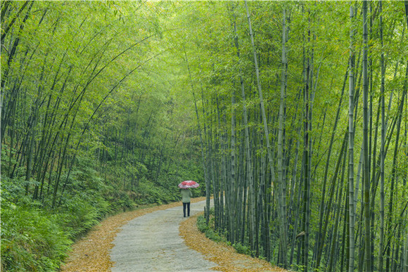 在固始西九華山風景區,隨處可見漫山遍野的竹林,郁郁蔥蔥、婷婷而舞。九華山的竹子品種多、面積大,有毛竹、桂竹、圓竹、楠竹等20多個品種。上萬畝竹園,從山腳、山腰到山頂,到處都是竹子,高低參差,隨意點染。站在竹林中,呼吸著新鮮的空氣,聆聽著小鳥的歌唱,山風吹起,竹海翻著翠浪,令人心曠神怡,美不勝收。