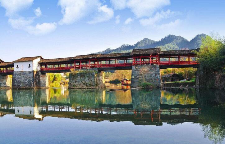 早餐后乘坐旅游大巴車赴【中國最美的廊橋——宋彩虹橋】彩虹橋歷史悠久,建于南宋,距今已有八百多年,是古徽州最估老、最長的廊橋,被眾多媒體譽為“中國最美的廊橋”,這座橋取唐詩“兩水夾明鏡,雙橋落彩虹”的意思取名,彩虹橋周圍景色優美,青山如黛,碧水澄清,【乘坐彩虹橋游船】瀏覽四周風光,會讓人深深體驗到婺源之美。
