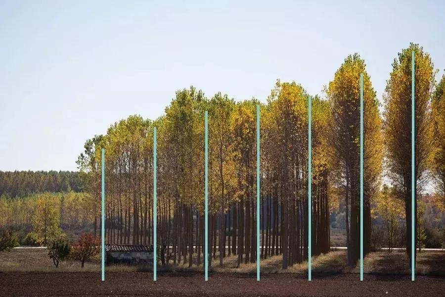 垂直式構圖拍攝樹木,體現樹木的高大與挺拔。