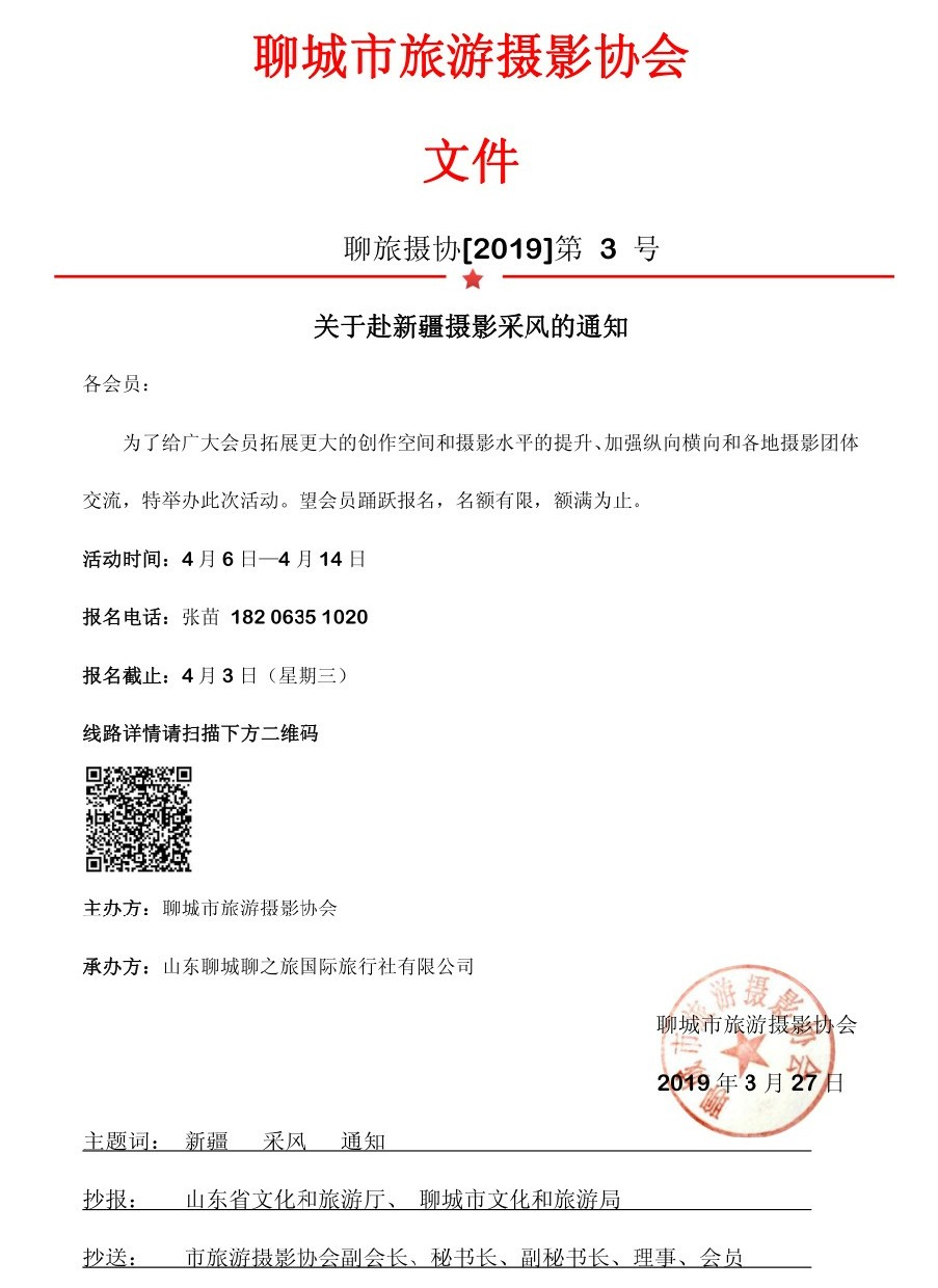 關(guān)于赴新疆?dāng)z影采風(fēng)的通知
