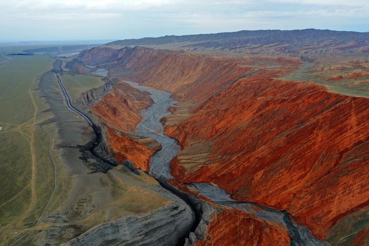 紅山大峽谷,位于新疆奎屯市安集海河流域,也稱安集海大峽谷。是兵團農七師紅山煤礦所在地。峽谷最深處約400米。縱橫交錯的溝壑,從峽谷邊緣一直延伸至谷底,形成險峻的“山峰”。“山峰”均由砂石和泥土組成,高則百米,猶如一把把利劍,“鋒芒”直指蒼穹。大峽谷以其險、奇而著稱,刀削斧劈的崖壁,蜿蜒曲折的流水,氣勢磅礴的深谷,色彩斑斕的奇石,以及象小甲蟲似的運煤卡車從谷底緩慢盤轉在陡峭彎曲小道上,象一個個跳動的音符,無不給幽深的峽谷增加了些許生機。