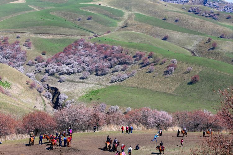 吐爾根杏花溝位于新疆伊犁新源縣吐爾根鄉(xiāng)。吐爾根杏花溝是一片中世紀(jì)遺留最大的原始野杏林,集中分布于鞏乃斯河北岸,占地有3萬多畝,是新疆野杏林比較集中的地區(qū)之一。