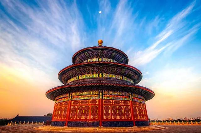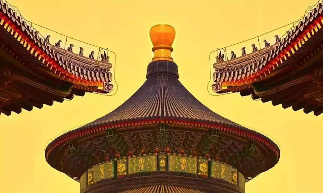 這幅作品將兩個屋檐和祈年殿的頂部構成了完美對稱。