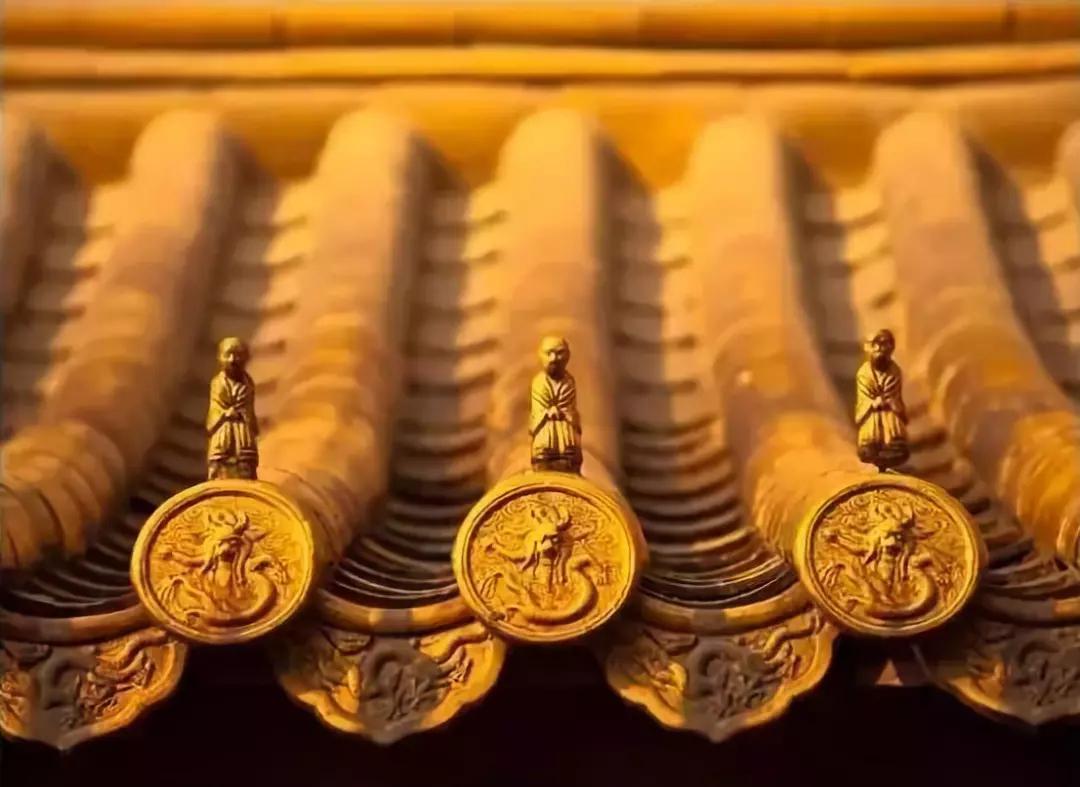 這是中國古建筑中的垂脊九獸。他們不僅是很好的裝飾物,同時也代表了威威皇權。