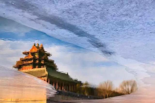 即使在冬季,也能拍出好的倒影作品。在冬季冰封的永定河上,只拍攝故宮角樓的倒影,再后期進行180°倒轉,營造出亦真亦幻的獨特意境。