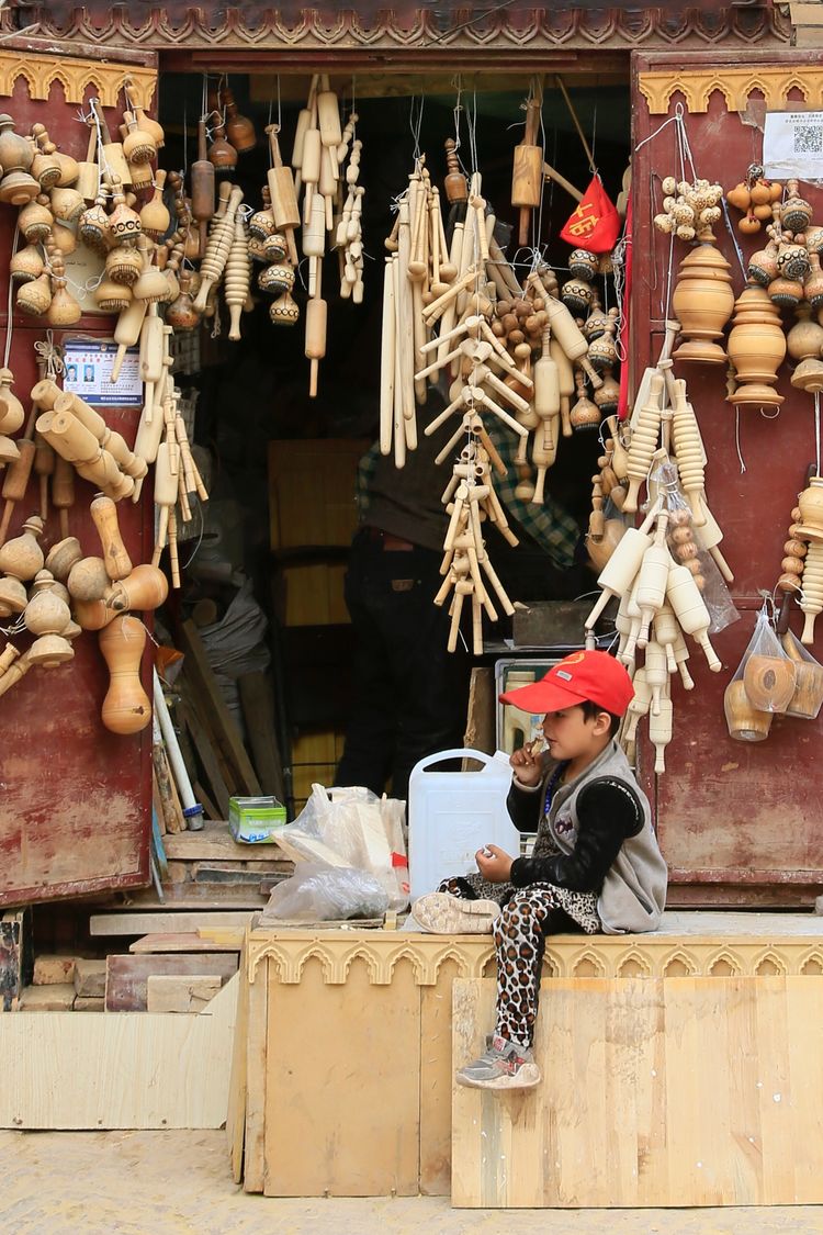 我們一行來到喀什,紛紛被這里濃郁的民族風情所吸引,幾天內多次深入到古城內拍攝。一手抓相機,一手掂著烤馕,好酷啊。