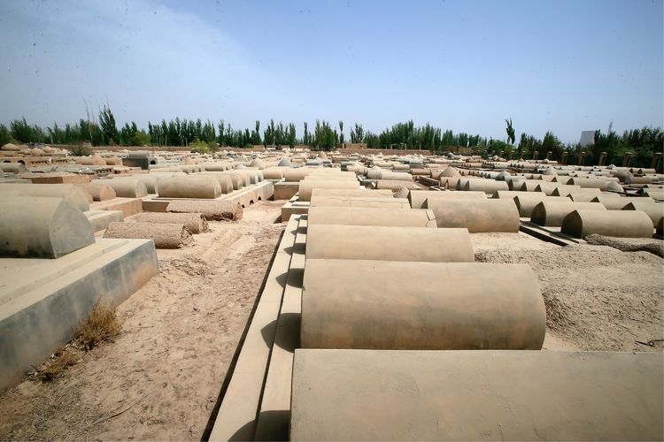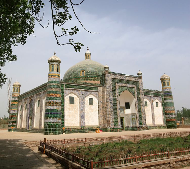 香妃墓,坐落在喀什市東郊的浩罕村,系自治區的重點文物保護單位。這是一座典型的伊斯蘭古建筑群,也是伊斯蘭教圣裔的陵墓,占地2公頃。 據說墓內葬有同一家族的五代72人。第一代是伊斯蘭著名傳教士玉素甫霍加。他死后葬于此。 傳說,埋葬在這里的后裔中,有一個叫伊帕爾汗的女子,是乾隆皇帝的愛妃,由于她身上有一股常有的沙棗花香,人們便稱她為“香妃”。香妃死后由其嫂將尸體護送回喀什,并葬于此墓內,因而人們又將這座陵墓稱作“香妃墓”。不過據考證,香妃并沒有葬在這里,她確切的葬地在河北遵化清東陵的裕妃園寢。