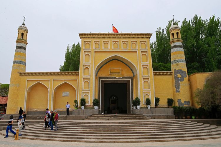 艾提尕爾清真寺坐落于喀什市艾提尕爾廣場西側,始建于1442年,它不僅是新疆規模最大的清真寺,也是全國最大的清真寺之一。在國內外宗教界均具有一定的影響。可惜,清真寺內部禁止拍攝。