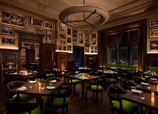 Clocktower是紐約艾迪遜酒店中的餐廳及酒吧,由紐約著名設(shè)計事務(wù)所RockwellGroup設(shè)計,馬蹄形的酒吧外觀是金箔飾面,吧臺頂?shù)牡鯚粲煞▏囆g(shù)家Eric Schmitt設(shè)計,吧臺的隔壁設(shè)置了一個臺球室。