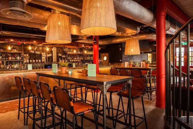 是紐酒吧位于倫敦的泰晤士河畔,酒吧的許多材料來自泰晤士河的一個碼頭的舊物回收,從而也讓酒吧的設(shè)計更貼近歷史。包括木制賽艇小船和酒吧的裝飾板等。