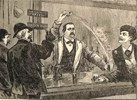 杰瑞·托馬斯的調酒生涯開始于耶魯大學的所在地,紐黑文。這或許是他被人戲稱為“教授”的原因之一。反正隨著淘金熱的到來,杰瑞·托馬斯遠赴舊金山,干的都不是什么體面事。他既在酒吧調酒,又下礦井采礦,甚至還身兼吟游詩人秀場經理…