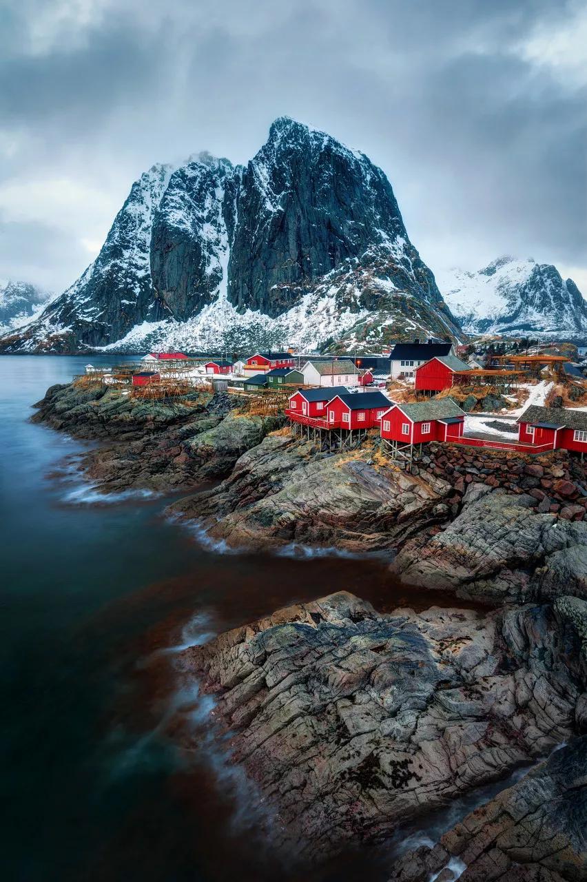 震懾人心的山巒,幽蘭寧靜的湖水,一切存在于童話中的建筑物、小漁船,就在這個神奇的挪威小鎮。