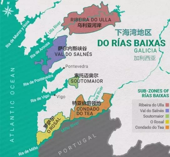 最近20年聲名鵲起,成為現象級產區的下海灣(Rías Baixas)位于西班牙西北部。這里吹拂著大西洋冷冽而潮濕的海風,獨特的Xabre 花崗巖土壤,成為特色白葡萄品種阿爾巴尼諾(Albari?o)生長的天堂。