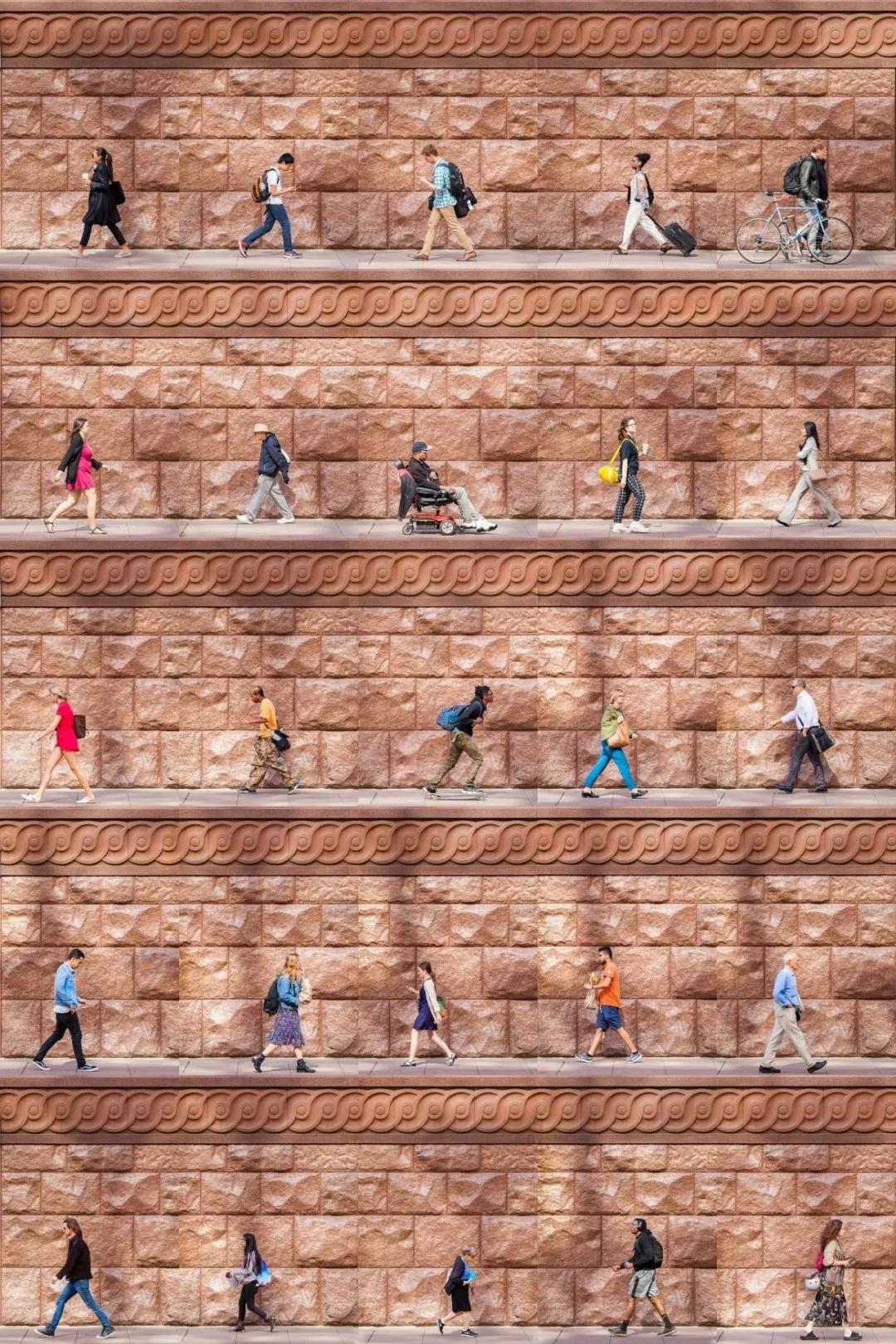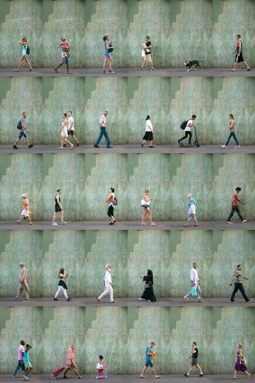“我在城市里四處游走,有時找個地方坐上幾個小時,然后在不被注意的情況下,拍下那些隨意靠墻經過的人。”