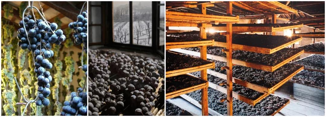 隨著時代的發展,目前主流的風干工藝主要分三種方式, Passerillage(藤上風干), Appassimento(枯藤法)以及Sun-dried(日曬法)。