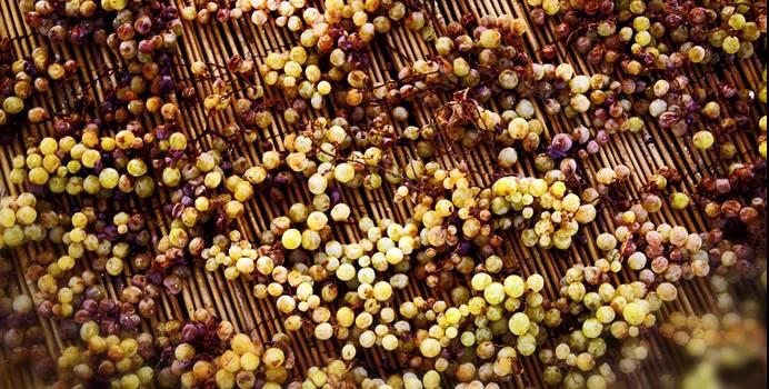和意大利圣酒在室內慢慢脫水數月不同,這里的葡萄直接被置于陽光下晾曬12-14天,脫水后進行破碎壓榨,糖分、酸度風味物質都極為濃縮。