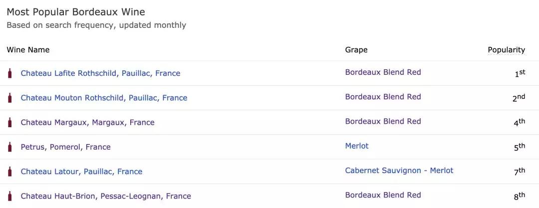 作為印證,5個一級莊的搜索量確實占據波爾多左岸的前5名。
