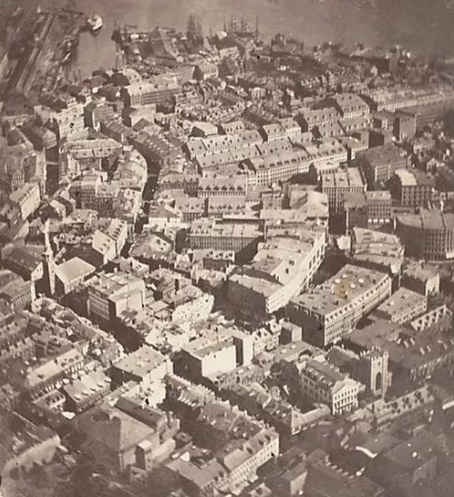 這張?jiān)?1860 年拍攝的照片對(duì)于航拍這項(xiàng)技術(shù)來說有著開拓性的意義,它在 2000 英尺的高空中向我們展示了波士頓的景色。