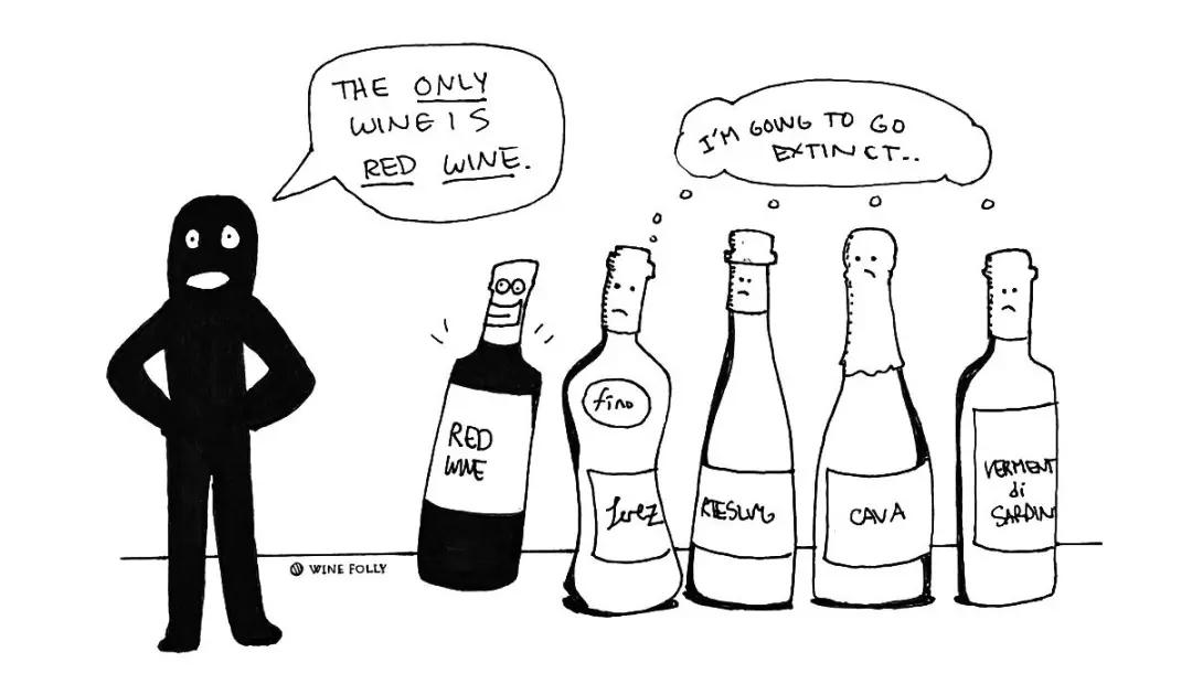 這句話太絕對了,因為葡萄酒的世界太太太大了!現在已知的就有超過1400個葡萄品種和數以千計風格不同的產區,為什么會有人要把自己局限在一個小圈子里?這根本毫無意義!也許這并不是什么大事兒,或者以他們現在對葡萄酒的了解,甚至還沒有意識到這一點。