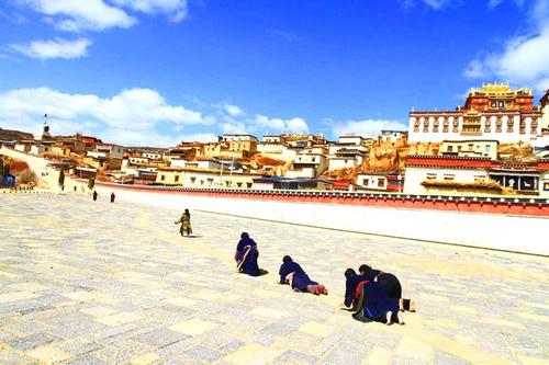 前往【大昭寺廣場】,每年都有眾多信徒從數千里之外幾步一叩首的到這里來朝拜、祈求降福,如自行付費購買門票進大昭寺,可預約導游免費講解;