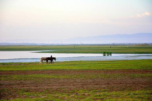 后赴寧夏和內蒙交界地【東湖草原】(車程約3.5小時左右)東湖草原景區面朝東湖綠洲,背靠騰格里沙漠,這里是沙的世界,更是水的天堂。這里是湖與沙的奇緣,這里是沙與湖的偶遇,沙漠環繞湖泊,形成了不可思議的自然景觀。景區內天然形成的大片湖水、草地,吸引了大量的牛、羊、駱駝、馬、遺鷗、黑灌、大天鵝在此逗留,景色優美宜人;入住酒店休息!