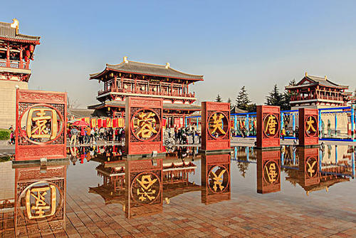 結束后赴西安游覽【大唐芙蓉園】它是在原唐代芙蓉園遺址以北,仿照唐代皇家園林式樣重新建造的,是中國第一個全方位展示盛唐風貌的大型皇家園林式文化主題公園,園內建有紫云樓、仕女館、御宴宮、杏園、芳林苑、鳳鳴九天劇院、唐市等許多仿古建筑,是中國最大的仿唐皇家建筑群。
