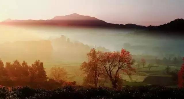 塔川烏桕樹經(jīng)過霜降,由綠變黃,由黃變紅,漸變出調(diào)色板般豐富的色彩。塔川的清晨極美,薄薄的霧氣似有似無,籠罩在山腰,林間,農(nóng)家的小屋若隱若現(xiàn),紅楓叢中小露飛檐翹角,黃葉微隙掩映粉墻黛瓦,如中國山水畫般詩情畫意。