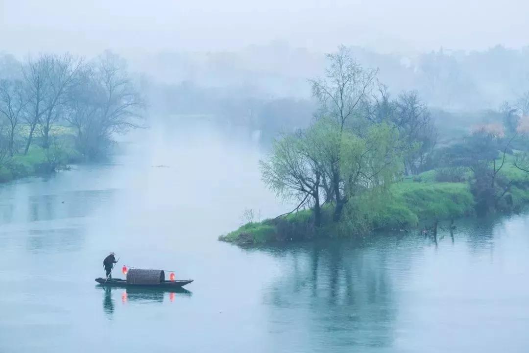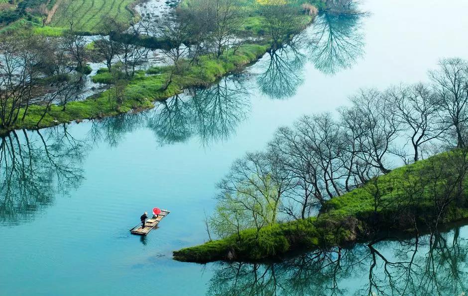 月亮灣依山伴水,水面平靜如鏡。一兩葉小舟,遠遠近近高低錯落的徽派民居互相輝映,形成了一幅絕美的畫面。