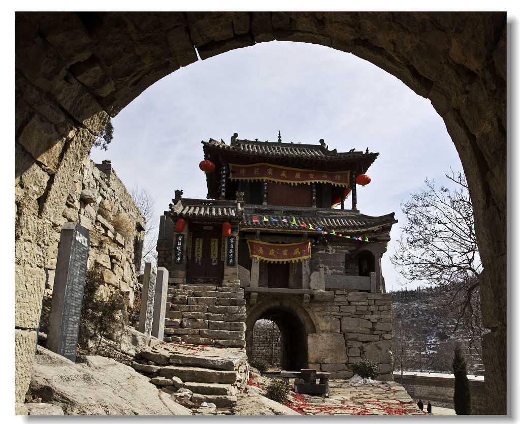 一絕“橋樓殿”。橋凌駕于百仞峭壁之間,仰視藍(lán)天一線,俯首萬丈深淵。形制如同趙州橋敞肩拱式。橋上建樓,云飛樓動(dòng),樓內(nèi)建殿,殿內(nèi)三尊大佛。真是“千丈虹橋望入微,天光云彩共樓飛”,不是仙境勝似仙境,疑是天堂落塵?!,F(xiàn)為中國三大懸空寺之一。