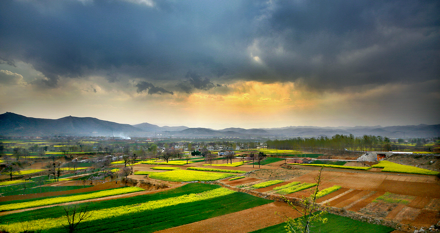 恬靜的村子,臥在山腳下