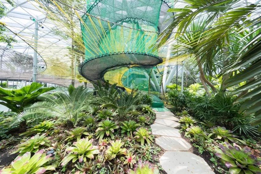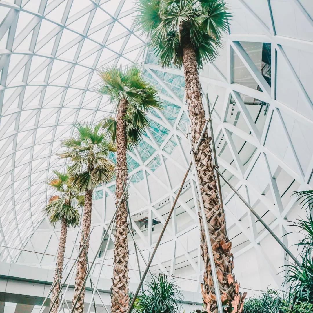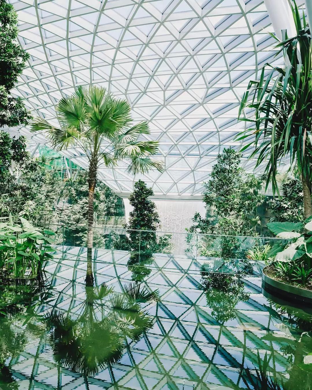配合著巨大的玻璃穹頂和沁人心脾的綠植