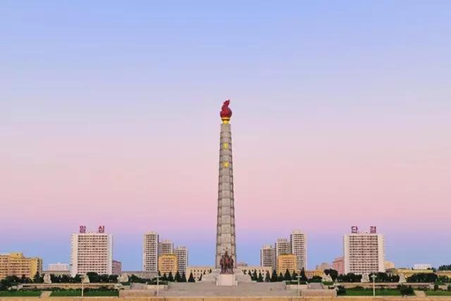 △ 主體思想塔,位于平壤市中心的大同江畔,是金日成創立的“主體思想”的象征。塔及其周圍附屬建筑占地總面積15萬平方米。