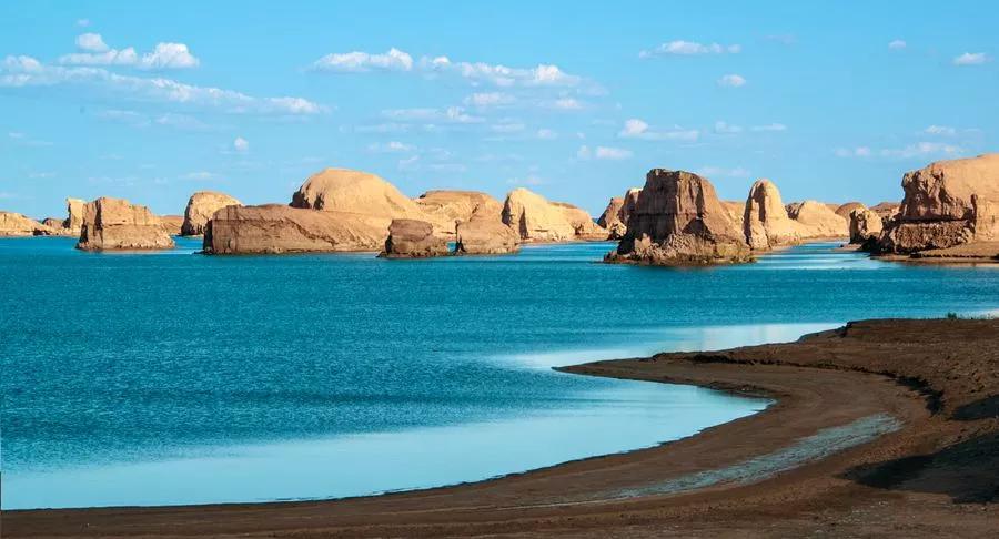 然后我們抵達深居柴達木盆地腹地的【水上雅丹】。這是世界上唯一一處水上雅丹地貌,因其位置較偏僻,即使是當地人也可能不知怎么過去,所以至今仍是一片未開發的處女地,鮮少有人涉足。這立于汪洋之上的雅丹地貌群經過上千年的風雨殘蝕,如同遨游大海顯露脊背的群鯨,湖岸邊高大的鯨背是天然的觀景臺,極目遠望,西邊是高低錯落的水上雅丹地貌群,有的如策馬揚鞭,有的如奔馳的駱駝,有的像婀娜多姿的女子,魔幻而神秘。以清澈透明的藍天為幕,參差錯落的雅丹地貌與碧波交相輝映,天上鴨鳴雁啼,水中波光粼粼,這一望無際的荒漠中憑空而出了一片”汪洋“,只有親身看過這一片汪洋上的鬼斧神工之作,才會明白為它為什么會被人稱為“魔鬼城”。