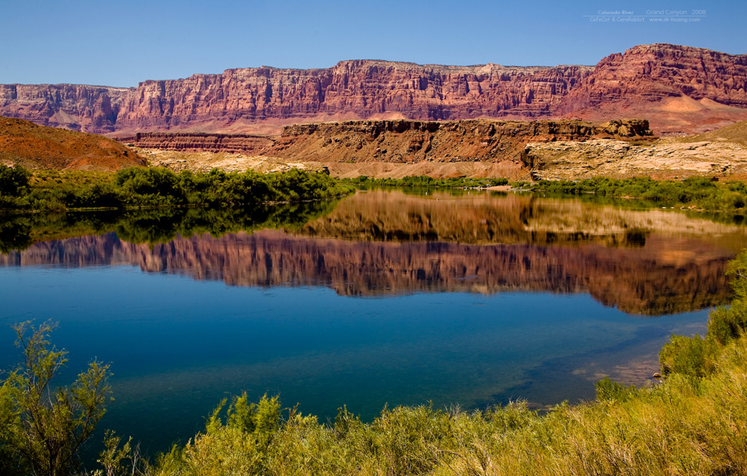 1935年建成的胡佛高壩形成的水庫,稱米德湖(MEAD),在大峽谷西端。1963年建成的GLENCANYON大壩形成POWELL湖,成為大峽谷東邊新的一處景點(diǎn)。這一東一西兩大壩之間,囊括大峽谷最精彩的主體。