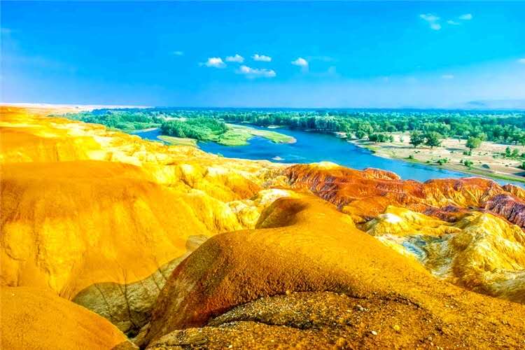 五彩灘一河兩岸,南北各異,是國家4A級景區(qū)。五彩灘,它位于我國新疆維吾爾自治區(qū)布爾津縣西北約24公里的也格孜托別鄉(xiāng)境內(nèi),注入北冰洋的額爾齊斯河穿其而過。五彩灘地貌特殊,長期干燥地帶,屬于典型的彩色丘陵(或彩丘地貌)。