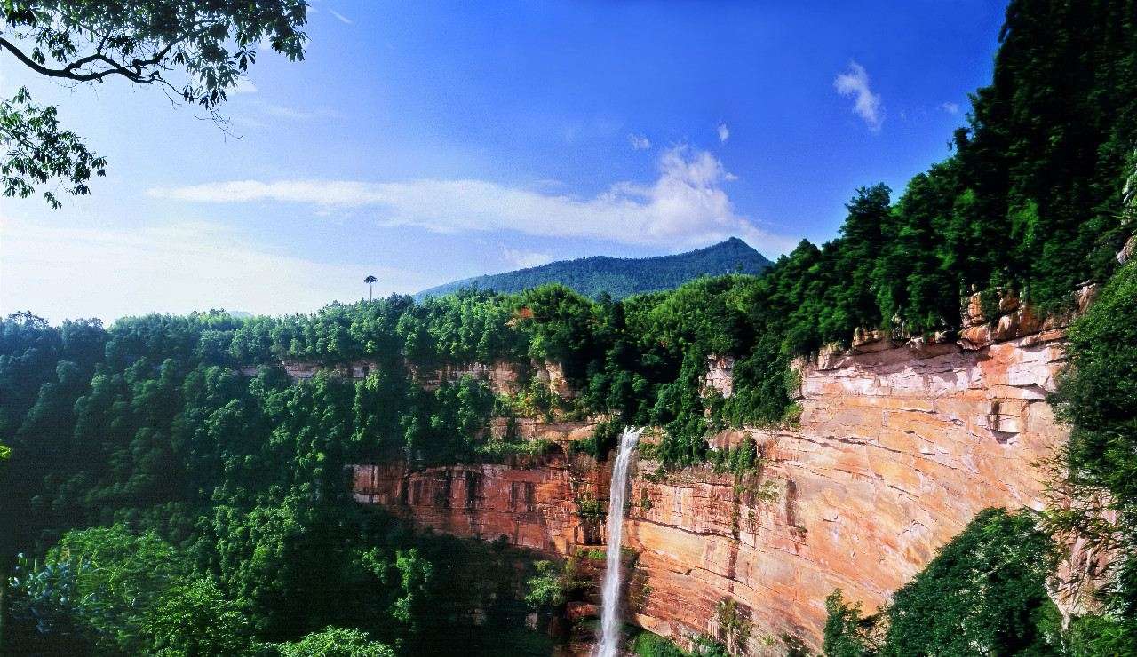 天下奇觀”的大白巖和“天造地設(shè)、鬼斧神工”的五柱峰為主體景觀,丹霞地貌、奇峰異石、絕壁巖穴、五柱峰、白龍瀑、丹霞城堡、茶花林等30多個靚景奇觀,由小金驛溝、世外桃源太陽谷、犁轅溝、豹子溝等五大景段構(gòu)成,面積20平方公里,集新、奇、險、秀、幽、野六大特色為一體,是赤水國家級風(fēng)景名勝區(qū)的重要組成部分。