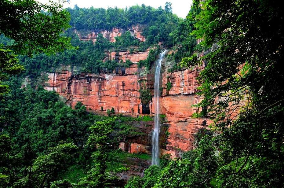 景區(qū)地處大婁山與北麓貴州高原四川盆地急劇沉降地段,谷深坡陡、溪河縱橫、切割深度在500米至1300米之間,山峰多在1200米以上,斷巖嶂谷,高度懸殊。出露地層全是侏羅紀(jì)、白堊紀(jì)河湖相紅色沉積巖。這種特殊的地貌在差異風(fēng)化,重力崩塌、風(fēng)雨侵溶等物理生化綜合作用下,形成寶塔狀、城堡狀、針狀、柱狀、棒狀、方山狀、峰林狀等無數(shù)奇異的丹霞地貌景觀,丹巖絕壁、奇峰異石、崖廓巖穴比比皆是、多不勝數(shù),大地山崖呈現(xiàn)出紅艷艷的赤紅色彩。是我國丹霞地貌面積最大,出露最齊,特色最典型的景區(qū)。