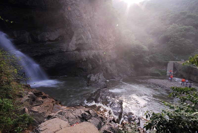 早5:00出發赴景區,中午9:30到達,游覽景區,自費參與動人心魄的真人CS槍戰游戲,激戰過后觀賞大淙潭瀑布群,領略“珠簾鉤不卷,飛練掛前川”——“豫西第一飛瀑”的雄姿,溯源而上,途中經過白龍瀑、九曲瀑、三疊峽谷、飲馬槽、姐妹潭等百余處潭瀑,體會“五步一潭,十步一瀑”瀑布群的神奇之處。游覽景區過程中游客可自費參與滑索、攀巖、游船等娛樂項目