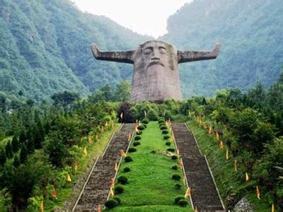 神農(nóng)祭壇的主體建筑是神農(nóng)巨型牛首人身雕像,此像高21米,寬35米,相加為56米,以示中華56個民族緊密團結(jié),欣欣向榮。雕像立于蒼翠群山之間,以大地為身驅(qū),雙目微閉,洞察秋毫,似在思索宇宙。祭祀?yún)^(qū)內(nèi),踩在腳下的是代表天和地的圓形和方形圖案,在代表地的方形圖案中,五色石分別為五行學說中的金、木、水、火、土。近處,高10米的圖騰柱分別立于祭壇的左右兩邊,柱上的大小牛首以示神農(nóng)氏為牛首人身,子孫后代繁衍之意。圖騰柱的前方有兩幅大型浮雕,展現(xiàn)了神農(nóng)氏一生的豐功偉績。兩幅浮雕之間設有九鼎八簋(古時人們用以煮盛的物品,現(xiàn)為中華民族的最高祭祀禮器)和鐘鼓樓以供炎黃子孫在此祭拜先祖,尋求庇佑。登高343級臺階,便來到了雕像前的瞻仰臺(古時為天子祭禮,瞻仰的地方)。